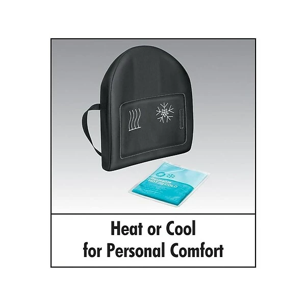 Pop the gel lumbar pack from this Fellowes back support into the microwave to achieve the perfect temperature that soothes back pain or warms you up on chilly days. Place the gel pack in the refrigerator, and use it to lower your body temperature in the heat or to treat a recent back strain or sprain. Constructed of high-density foam for supportive cushioning, this back support is covered with a soft-touch fabric that feels good when placed against your bare skin.