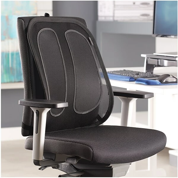 This Fellowes Office Suites mesh back support forms to your body and provides maximum support with additional padded features. Enhance personal comfort and airflow with mesh fabric and eliminate the need for re-adjustment with the Tri-tensioning attachment. The Fellowes Office Suites back support easily attaches to any chair. Forms to your body and provides maximum support with additional padded features. Enhance personal comfort and air flow with mesh fabric. Eliminate the need for re-adjustment with the Tri-Tachment attachment. Easily attaches to any chair.