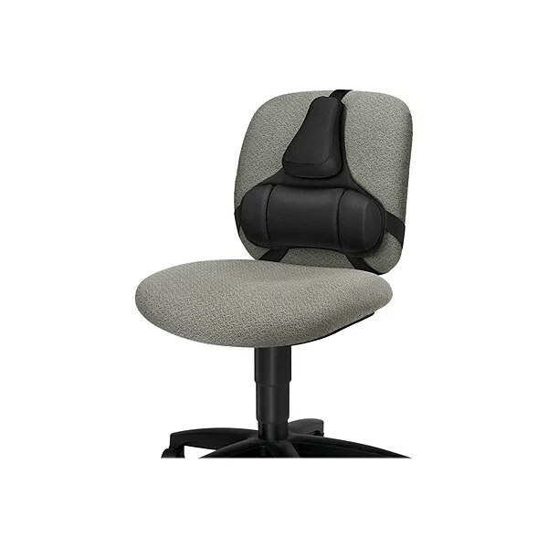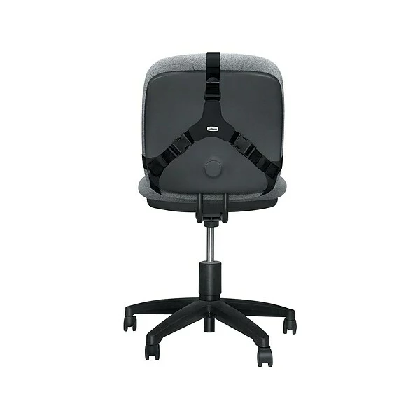 Turn any office chair into ergonomic seating with this Fellowes support cushion. Featuring a memory foam construction, this cushion adjusts to your back to provide the perfect level of support, and the straps are easy to set up and adjustable, so you can add comfort to chairs of varying shapes and sizes. Available in black, this cushion has a professional look that is ideal for the office.