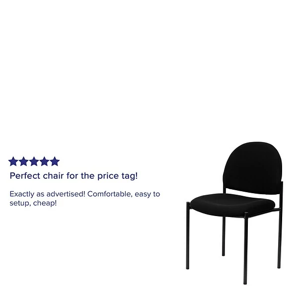 Flash Furniture Stackable steel side chair with black fabric for a graceful appearance has two steel cross brace bars for back-up, beneath the seat. 250 lbs capacity chair has cannular steel frame with black finish.