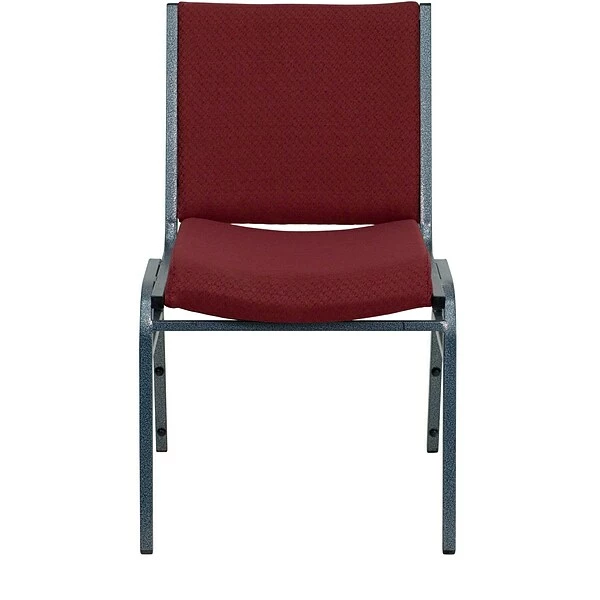 Flash Furniture HERCULESâ„¢ Heavy duty multi purpose stack chair features 18 gauge high carbon steel for optimum stability. Chair is made of burgundy patterned fabric upholstery with 3” thickly padded seat offering comfort.