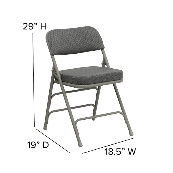 Ensure that your guests, clients, or parishioners pay more attention to you than the clock with this ultra-comfortable Flash Furniture HERCULES Series folding chair. This chair is a practical choice for social activities and everyday use in the home due to their compact storage capabilities. The steel folding chair is commercial grade to withstand heavy and daily use in any industry. Take your regular group meetings outdoors instead of staying in a stuffy room or host beautiful outdoor events with the arrangement of this two-pack of padded folding chairs. While suitable for outdoor use, store the chair indoors to protect the frame from extreme moisture. Its 18-gauge triple-braced curved steel frame supports up to 300 lbs. while the nonmarring floor glides protect your flooring from scuffs and scrapes. The uses are endless with this multipurpose chair to fulfill your seating needs for your business or home. With nothing to assemble the chair comes ready to service your needs.