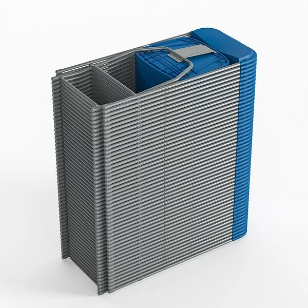 - Blue plastic chair with an 18-gauge powder-coated steel frame