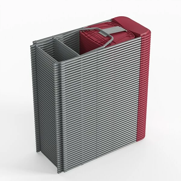 - Red plastic chair with an 18-gauge powder-coated steel frame