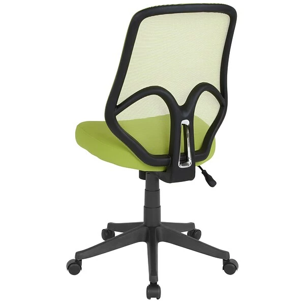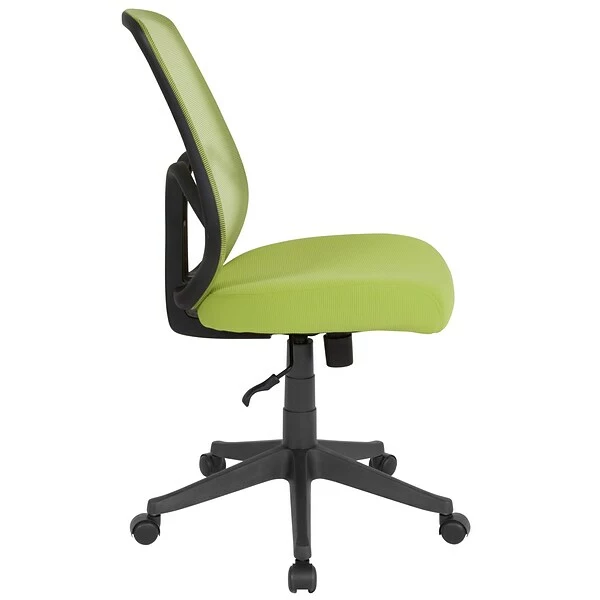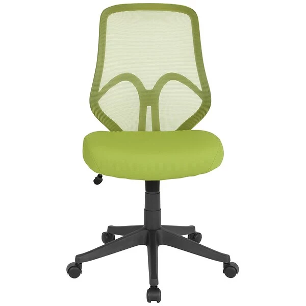 Breathe new life into your office, dorm or home office with this comfortable High Back Mesh Chair. The transparent mesh back allows air to circulate, keeping you cool no matter how high the pressure gets. The swivel seat is foam padded and has a waterfall front for leg comfort. Built-in lumbar support helps prevent back strain and muscle fatigue. Raise and lower the seat using the pneumatic seat height adjustment lever, conveniently located below the seat. The heavy-duty, nylon base with dual wheel casters makes it easy to roll across the floor. Whether you’re studying, browsing or on a tight deadline, this stylish chair will keep you cool and comfortable throughout your busy day.