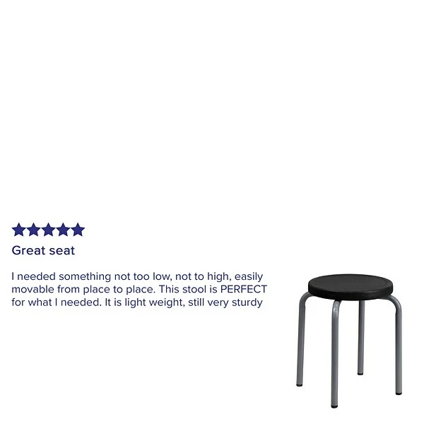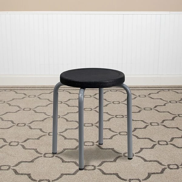 Easy to store and use, the versatile Flash Furniture Backless Stool blends in with the décor of your office or home. The frame of this black backless stool is coated with silver powder for long lasting shine and durability. As it is fitted with plastic floor glides, you do not have to worry about damaging your flooring.