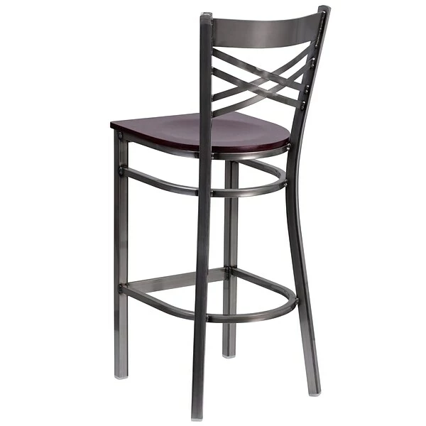 - Color: Mahogany Wood Seat/Clear Coated Metal Frame; Material: Plywood, Steel