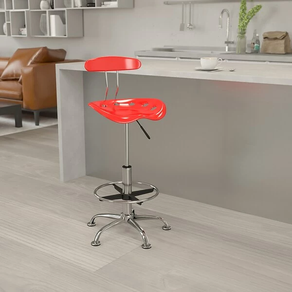 - Cherry tomato drafting stool has a molded tractor style seat for comfort