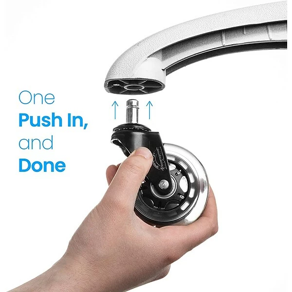 - Very easy to install. Pull out the old chair casters and push in your new wheels, till they are firmly seated and secure.