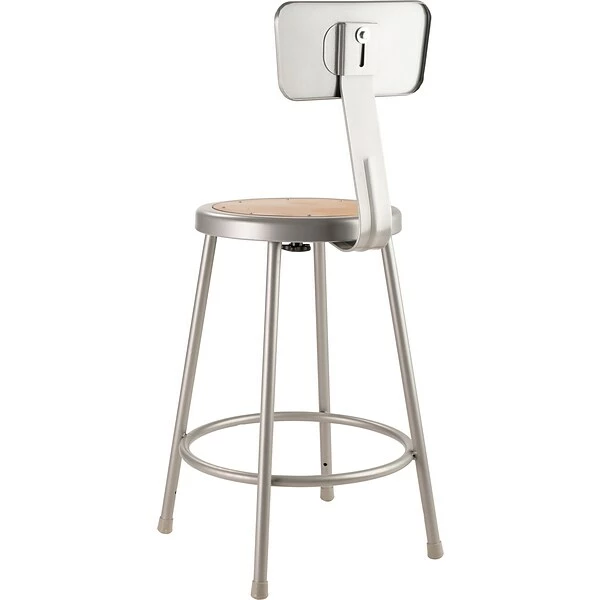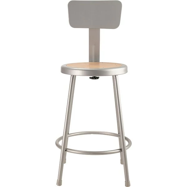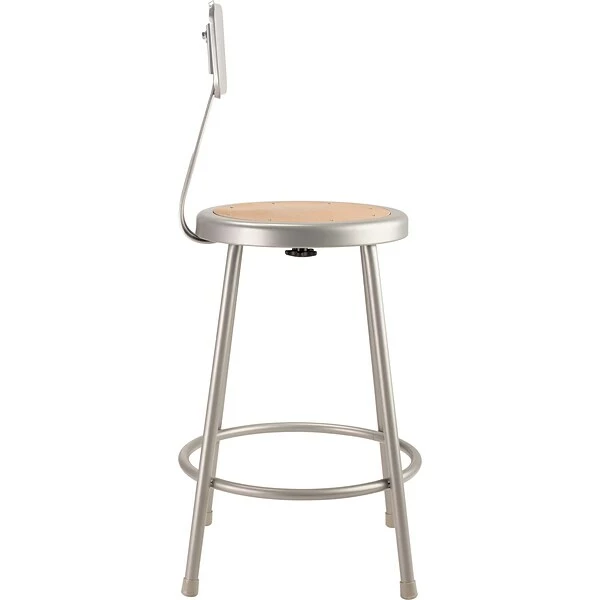 Take your seating to a whole new level with this durable steel stool from NPS. This round stools is equipped with an adjustable backrest for optimal support and prevention of fatigue, and the bottom footrest keeps your legs from dangling. Plastic floor glides prevent scuff marks and scratches on hardwood flooring. The hardwood seat is attached with metal rivets to prevent wear and tear, ensuring years of use.