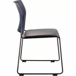 The 9300 Silhouette stack chair is durable and classy enough to use in your busiest social setting, be it a dining room or corporate banquet hall. It features a strong square 18-gauge steel frame plus an under-seat H-shaped brace for extra support. The seat features supremely comfortable and spacious 2″-thick high-density foam padding with institutional grade vinyl upholstery or fabric, and a waterfall-style edge. Plywood core within both the seat and crown-style backrest which has a built-in handle for easy moving and stacking. Fortifying stacking bars and twelve plastic bumpers protect the powder-coated paint finish from scratches when the chair is stacked (up to ten units high.)