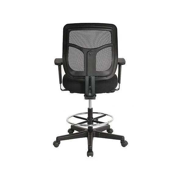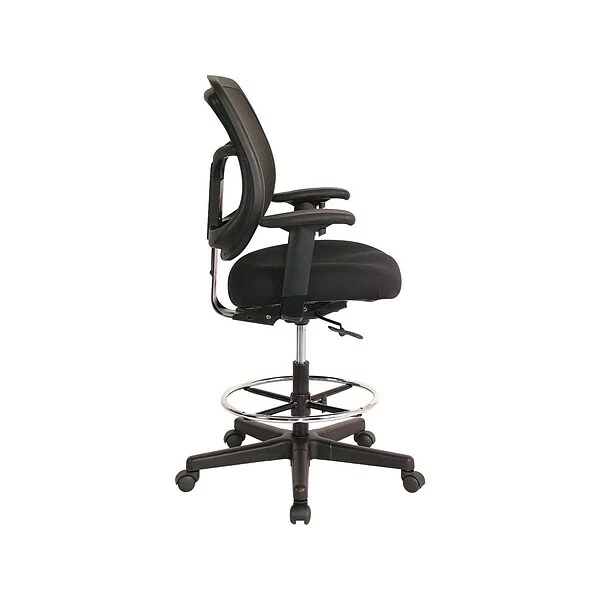 Adjust the backrest, height, and arms on this office chair to match and meet your desk. The well-padded fabric seat delivers reliable comfort during long working sessions or meetings, while the adjustable lumbar support helps keep your lower back in perfect alignment. The contemporary design, black mesh back and chrome accents of this EuroTech drafting chair add a sophisticated look to any office setting.