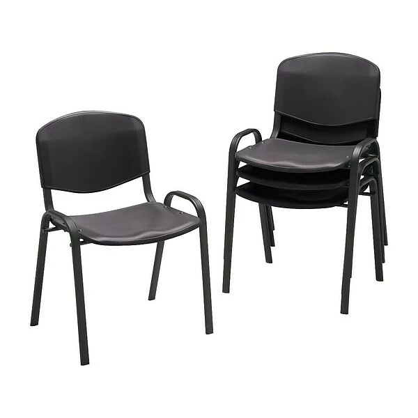 Adorn the reception area with these stylish, black chairs. Each seat and back is contoured with high-impact polypropylene material for extra support and durability, and the sturdy steel frame’s legs have plastic glides to protect floor surfaces. These lightweight Safco chairs are stackable to save space when stored.