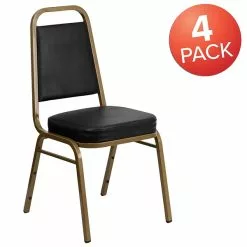 Flash Furniture HERCULES Trapezoidal Back Banquet Chairs W/Black Vinyl & Gold Frame, 4/Pack