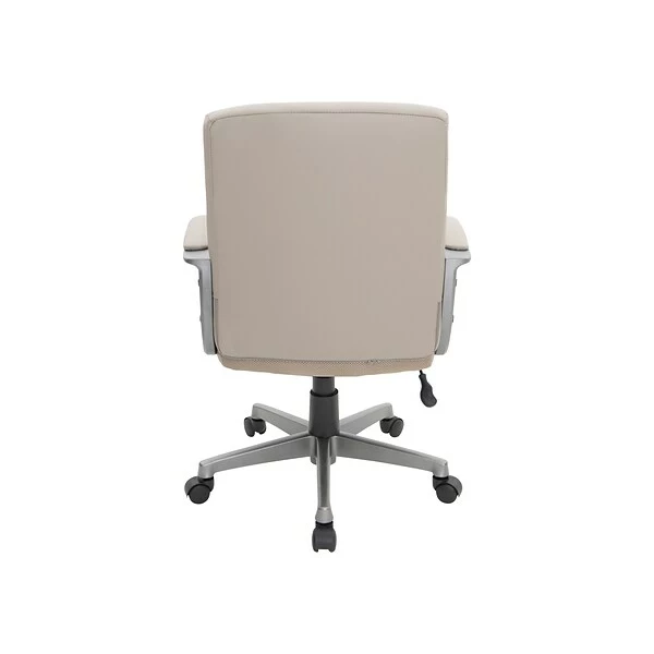 Stay comfortable while you work in this Tervina™ taupe managers chair. Padded armrests provide added comfort, and built-in lumbar offers additional support. The soft upholstery looks and feels just like real leather for an elegant finishing touch. Use the pneumatic seat height adjustment and tilt tension to find then lock the perfect setup for your body.
