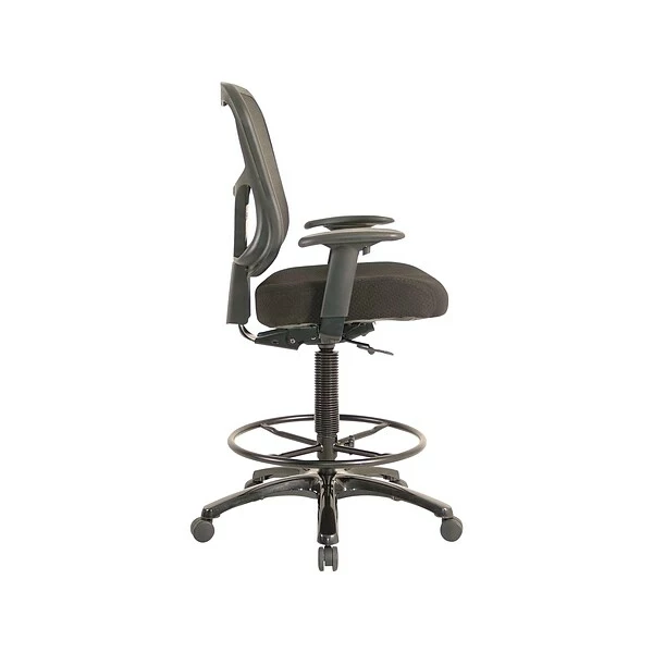 - Work comfortably with this ergonomic drafting stool with adjustable arms, backrest, and footrest