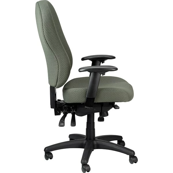 Tempur-Pedic® Ergonomic fabric mid-back task chair provides height and width adjustable arms, center tilt with lock, forward tilt and tilt tension. Chair features a olive polyester fabric upholstery seat to provide durability and extended comfort.