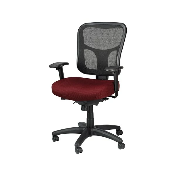 This Tempur-Pedic TP8000 ergonomic mesh mid-back task chair includes an elegant two-tone design. Burgundy polyester upholstery graces the seat of this unit, while a black mesh back and five-star base creates a nice contrasting style that will look great in your office.