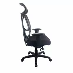 - Mesh seat back and fabric upholstery for comfort