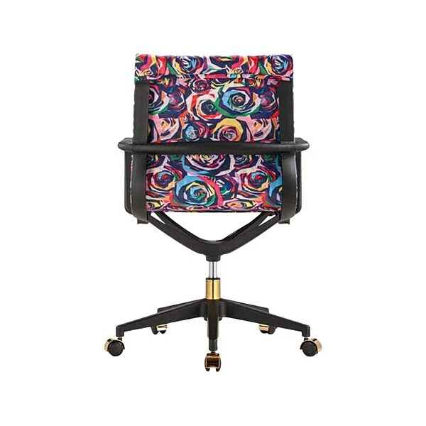 - Features a patented ESC fabric upholstery in a Multi Rose design and a black base with gold-tone accents