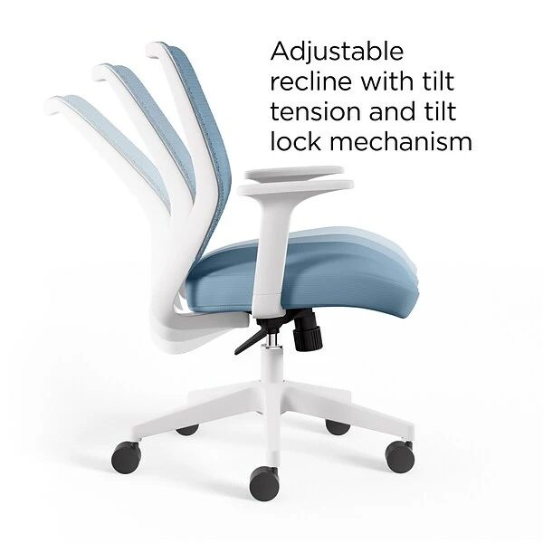 Create a comfortable work setting with this seafoam task chair. Tilt tension and tilt lock features make it easy to recline and relax between demanding projects, while the contoured seat with thick foam padding provides lumbar support throughout the workday. A mesh back delivers cooling comfort. This sturdy task chair delivers a clean, space-saving profile that works well with reception setups or cubicle stations, providing a harmonious look throughout your office space. Boasting a height-adjustable design, this Union & Scale™ Essentials seafoam mesh and fabric task chair is easy to customize so you can find a perfect height for your workstation and computer screen, and the caster wheels roll easily from desk to printer and back again.