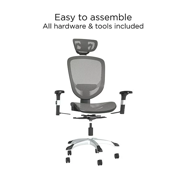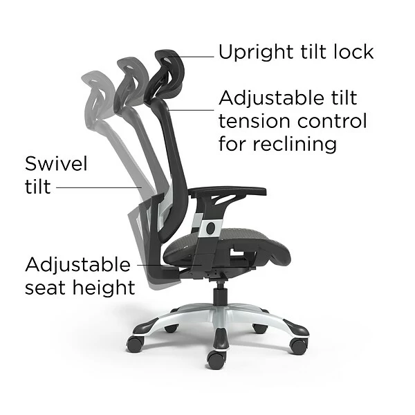 Speed through your deadlines comfortably with this mesh task chair. Adjustable armrests and seat height let you customize your seating position, while the mesh back regulates airflow for a cool working environment. Fine-tune recline resistance to your preference with the convenient tension knob and lock the back in a vertical position with the upright tilt lock. The ergonomic design and adjustable lumbar support contour to your body for maximum stability and comfort, and the five-star base with casters offers effortless mobility. This FlexFit Hyken mesh task chair meets ANSI/BIFMA standards for product safety and performance and features an adjustable headrest to cradle your head and support your neck.