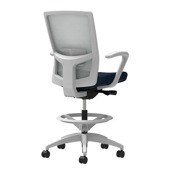 Union & Scale Workplace2.0™ Fabric Stool, Navy, Adjustable Lumbar, Fixed Arms, Synchro-Tilt Seat Control (53802)